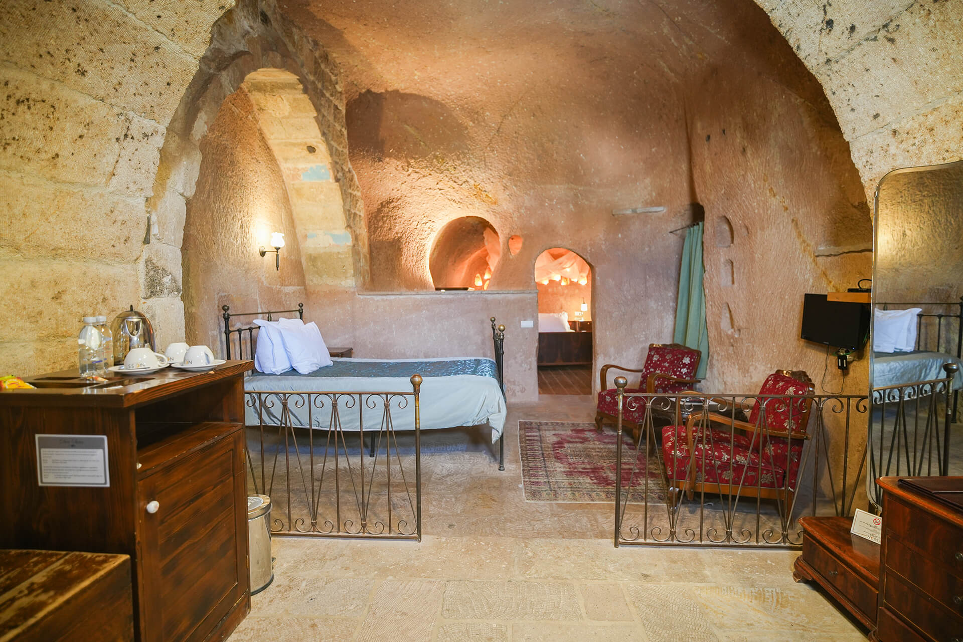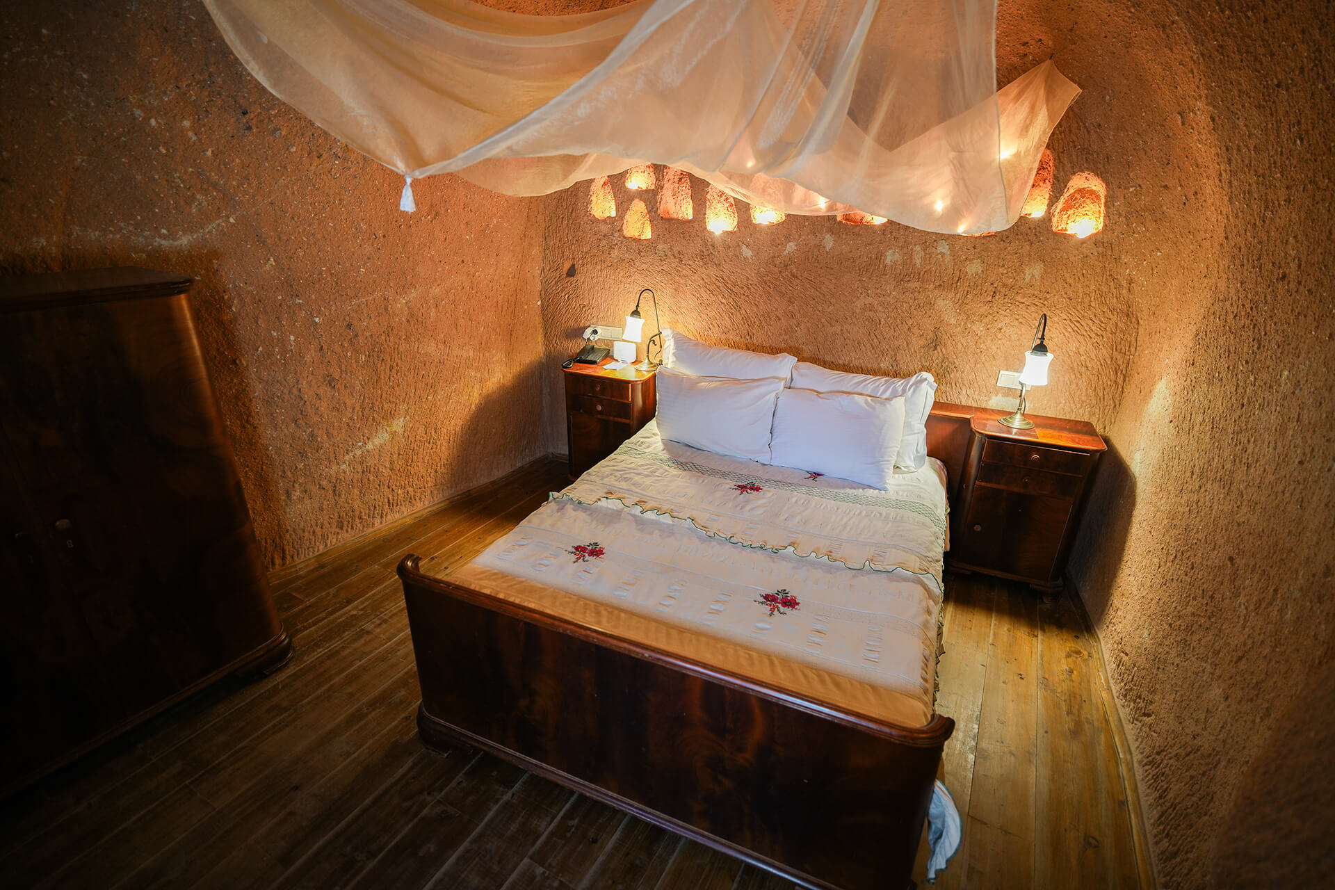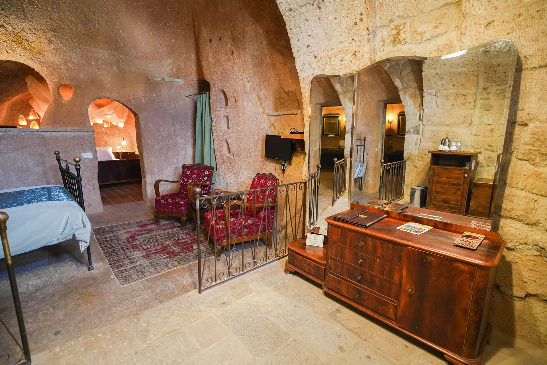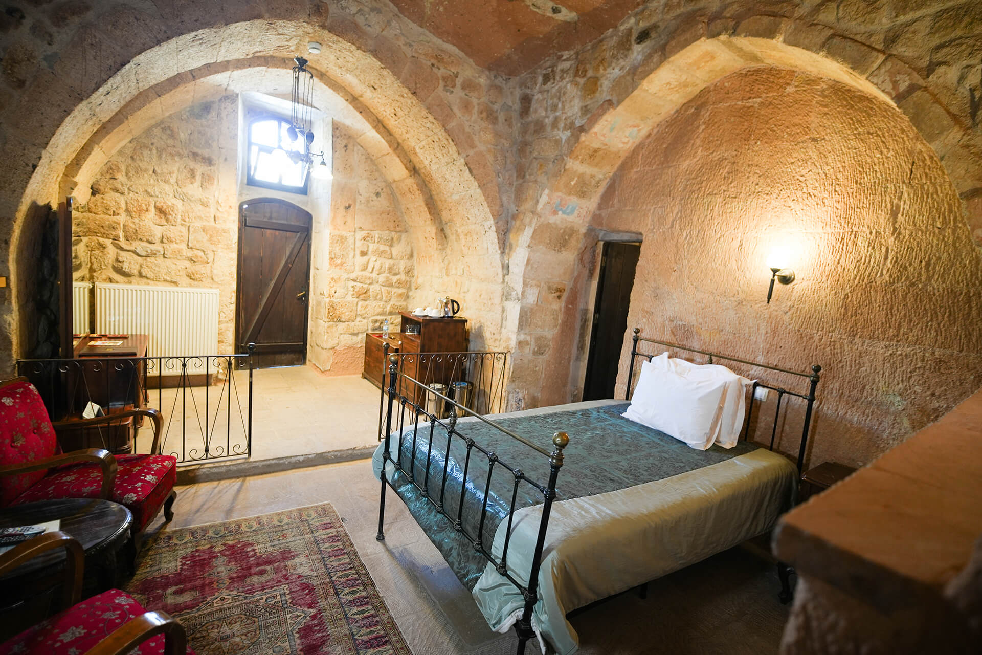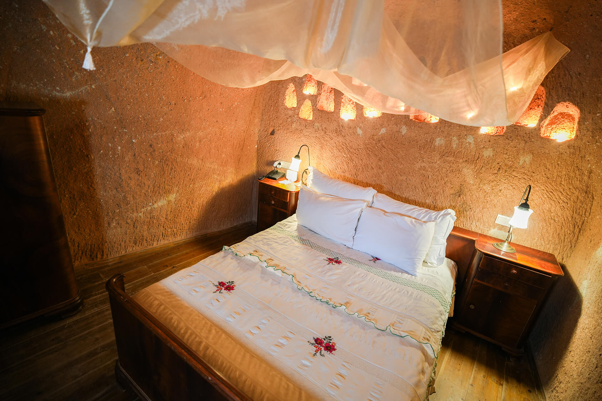 Kalitenin temel ilke olarak benimsendiği ve estetiğin ön planda olduğu, standartların üstünde hizmet veren otelimizin, orijinal görünümlerine sadık kalarak, Nevşehir'e özel kepez taşı ve tarihi işçilik tarzı ile restore edilen kayadan odalarında, misafirlerimize tarihi bir ortamda modern olanaklarla konaklama imkanı sunmaktayız.