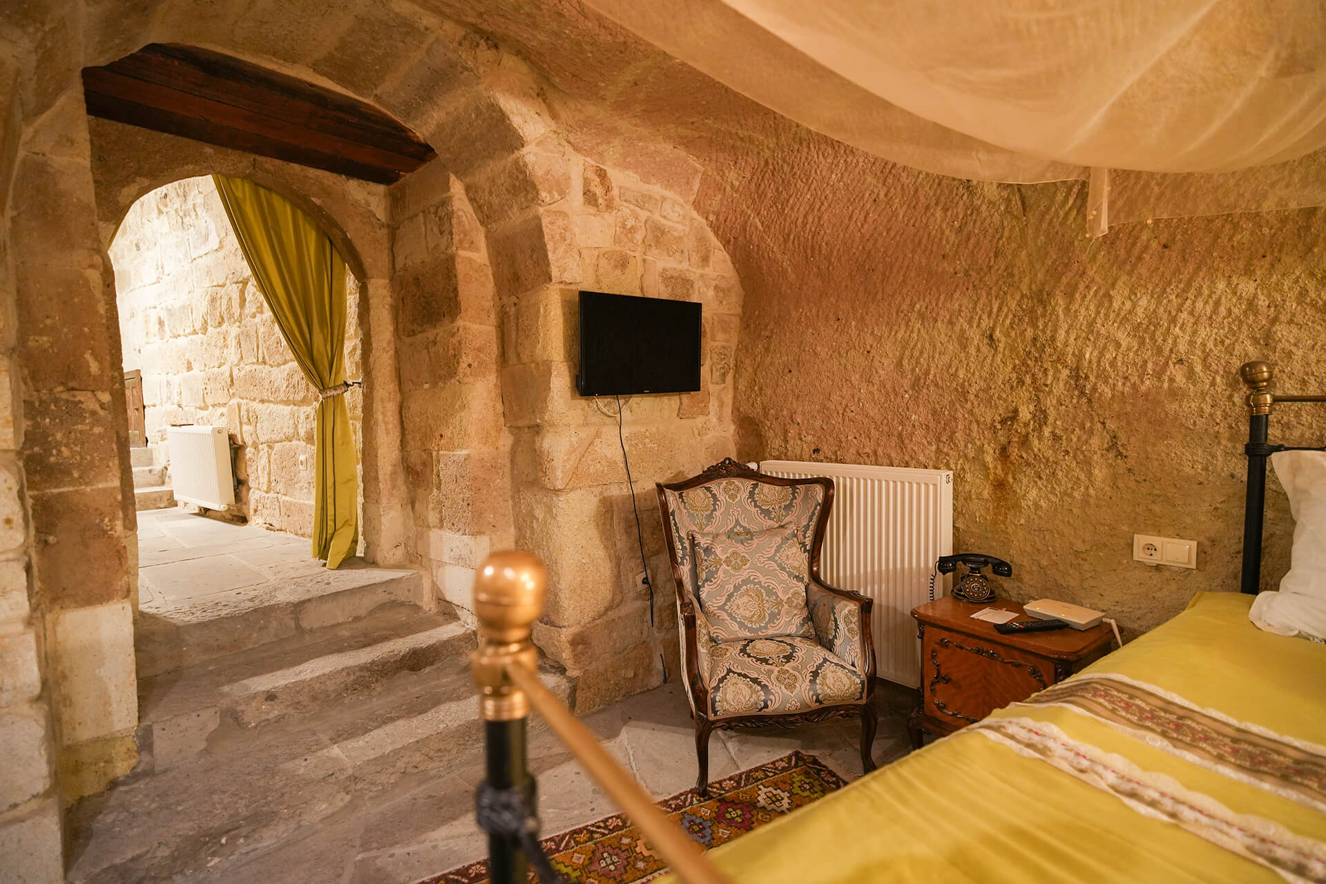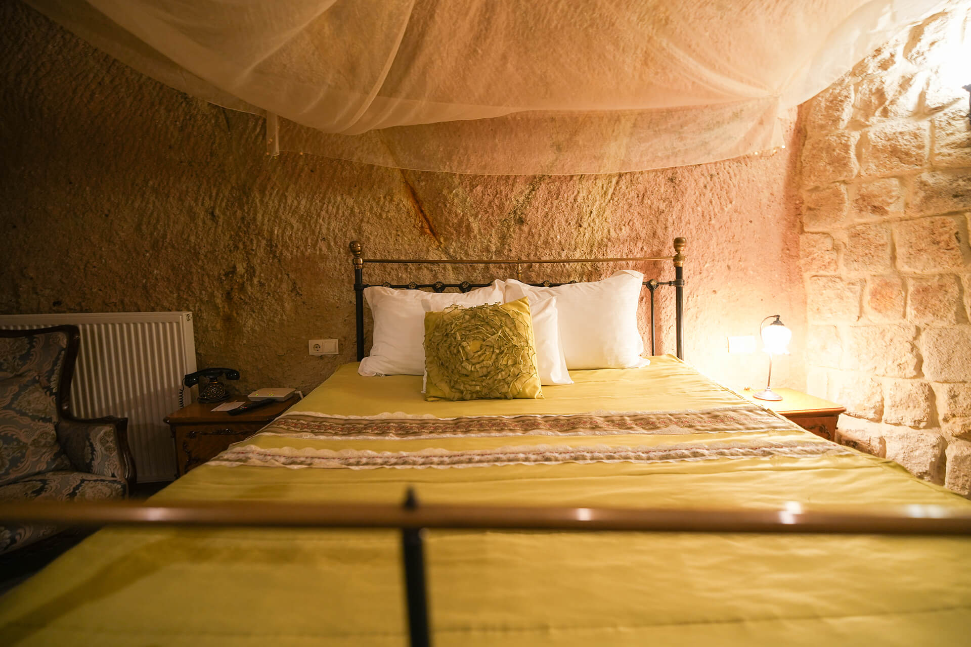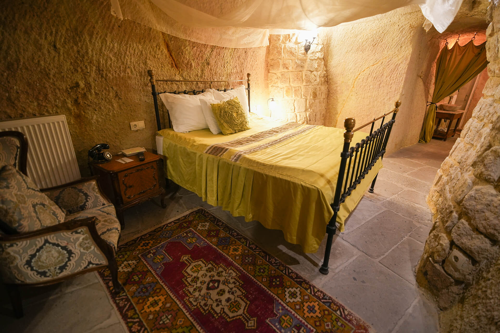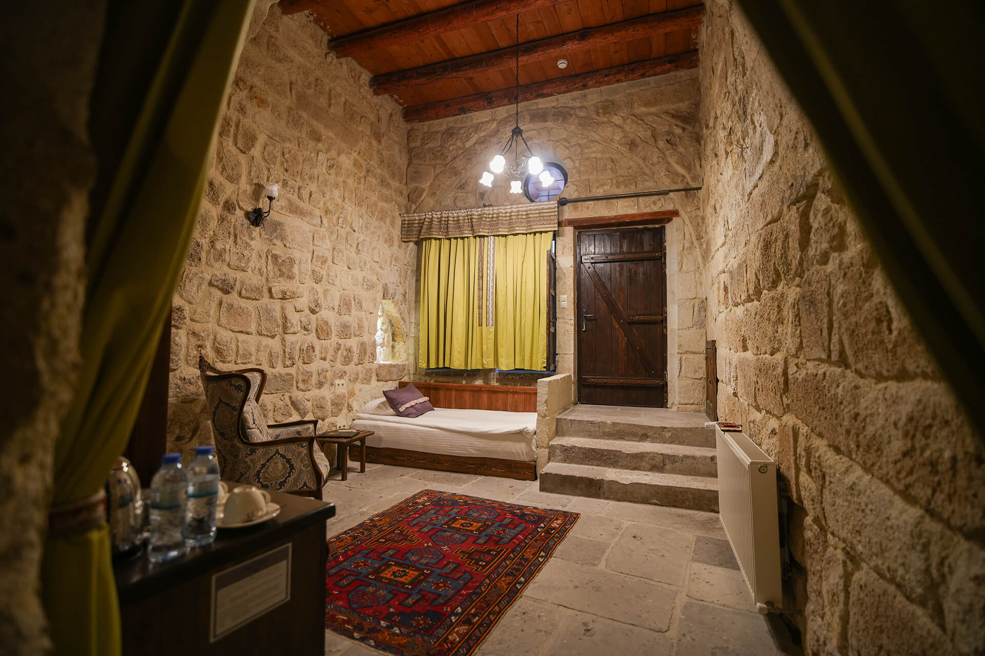 Kalitenin temel ilke olarak benimsendiği ve estetiğin ön planda olduğu, standartların üstünde hizmet veren otelimizin, orijinal görünümlerine sadık kalarak, Nevşehir'e özel kepez taşı ve tarihi işçilik tarzı ile restore edilen kayadan odalarında, misafirlerimize tarihi bir ortamda modern olanaklarla konaklama imkanı sunmaktayız.