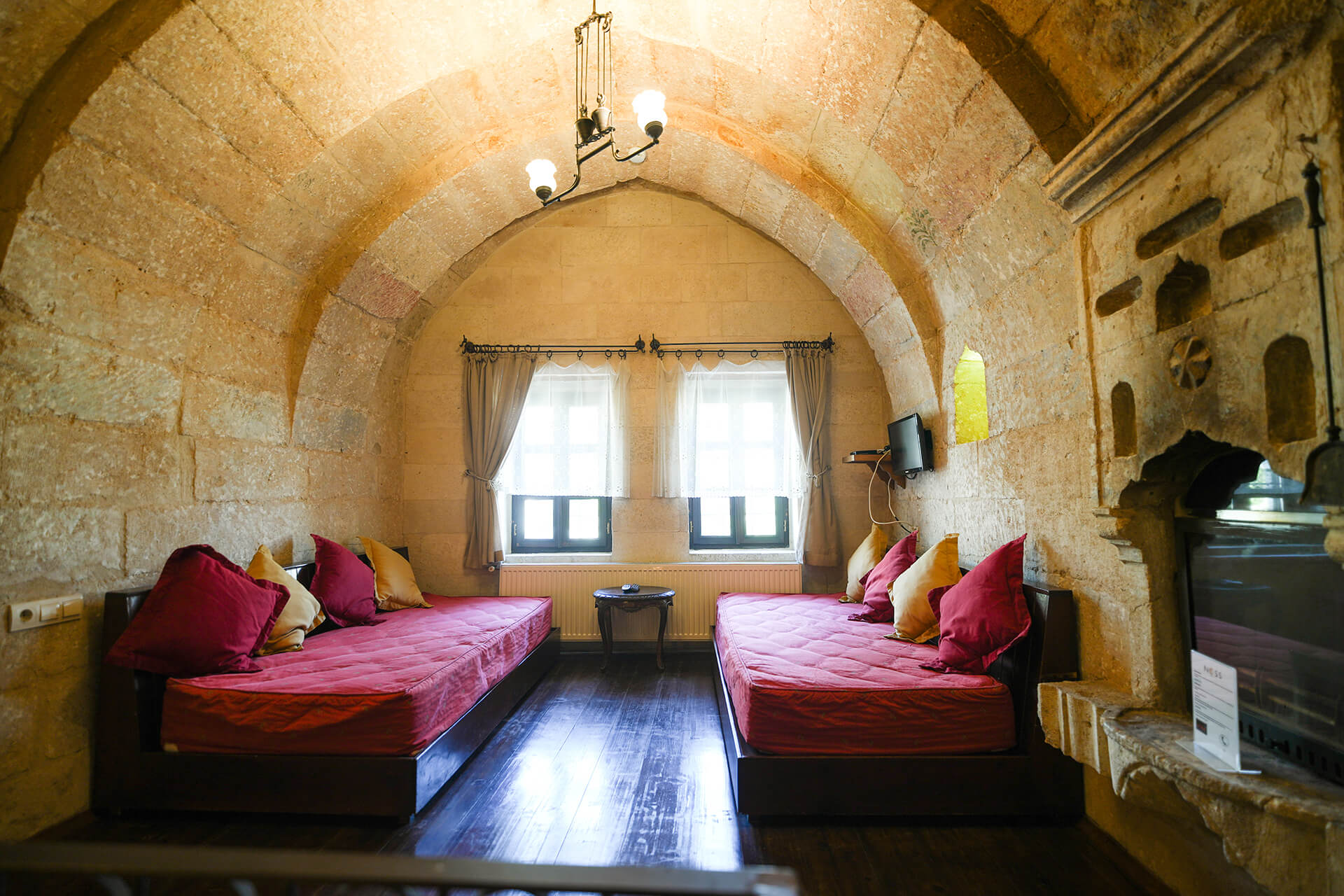 Kalitenin temel ilke olarak benimsendiği ve estetiğin ön planda olduğu, standartların üstünde hizmet veren otelimizin, orijinal görünümlerine sadık kalarak, Nevşehir'e özel kepez taşı ve tarihi işçilik tarzı ile restore edilen kayadan odalarında, misafirlerimize tarihi bir ortamda modern olanaklarla konaklama imkanı sunmaktayız.