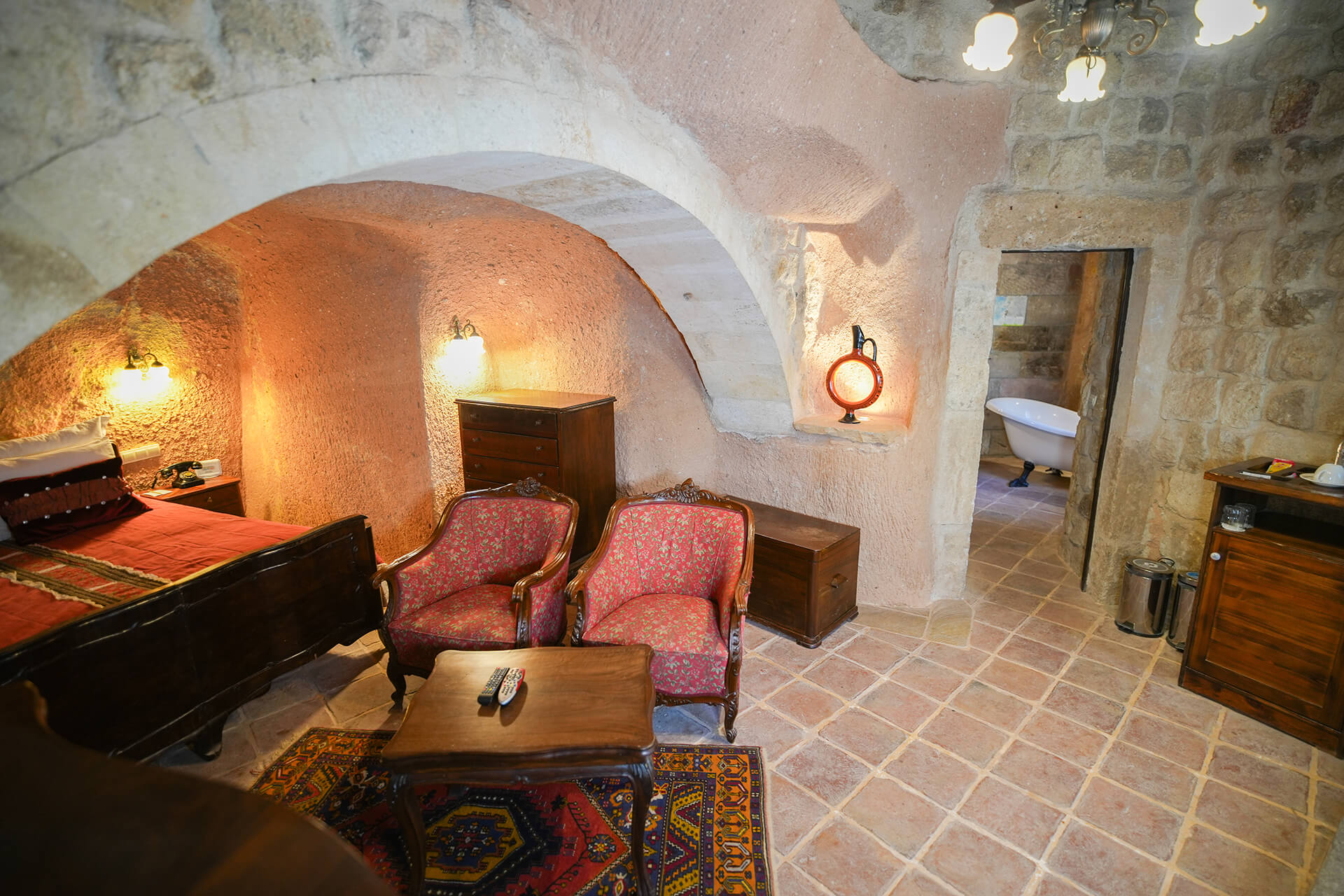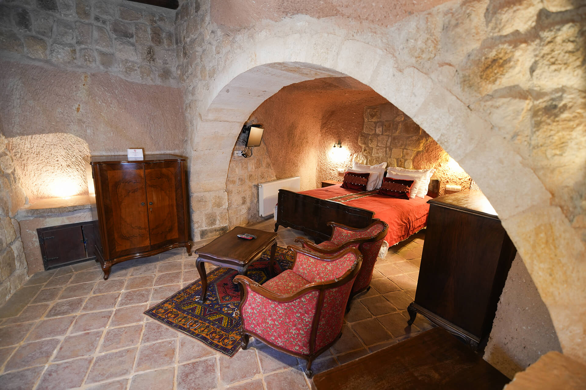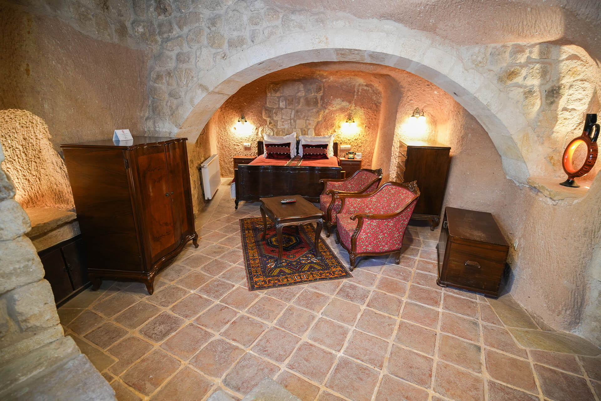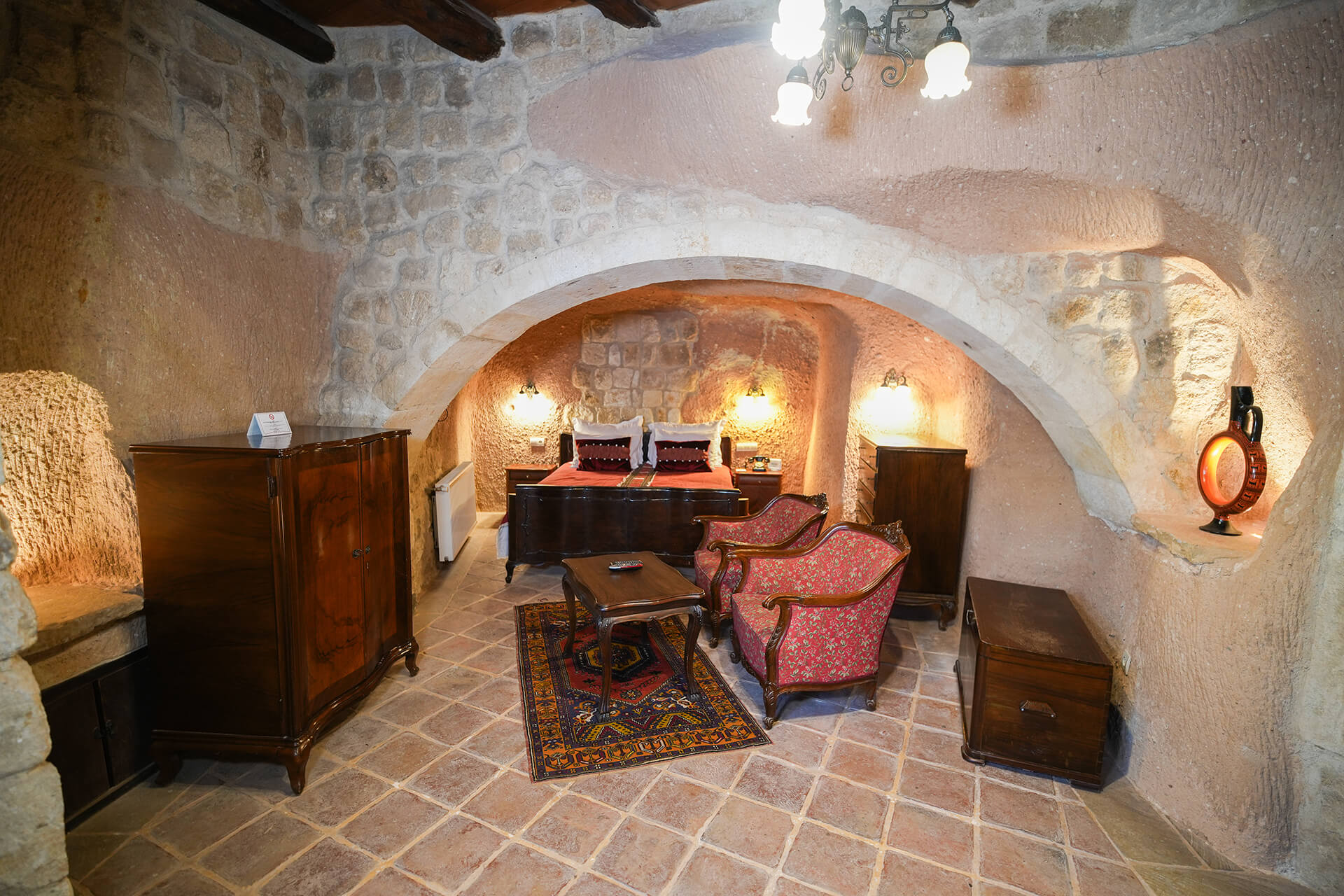Kalitenin temel ilke olarak benimsendiği ve estetiğin ön planda olduğu, standartların üstünde hizmet veren otelimizin, orijinal görünümlerine sadık kalarak, Nevşehir'e özel kepez taşı ve tarihi işçilik tarzı ile restore edilen kayadan odalarında, misafirlerimize tarihi bir ortamda modern olanaklarla konaklama imkanı sunmaktayız.