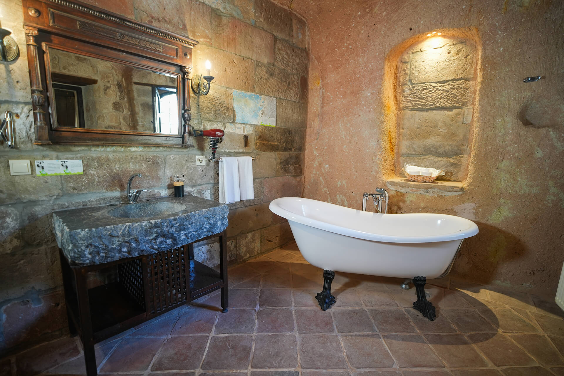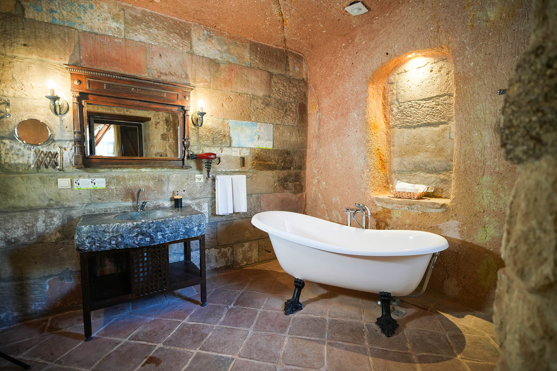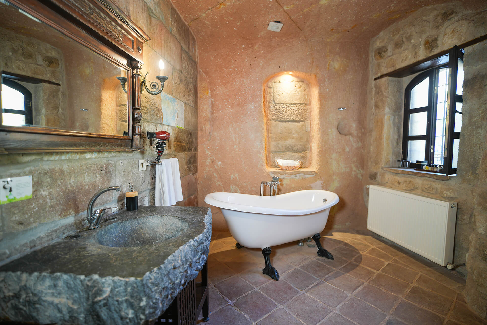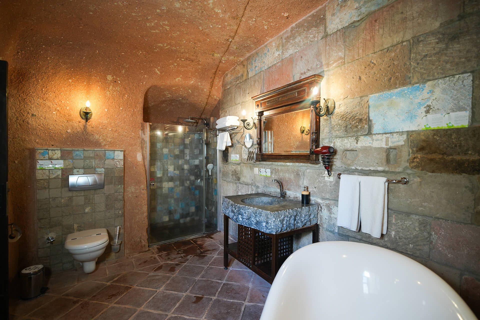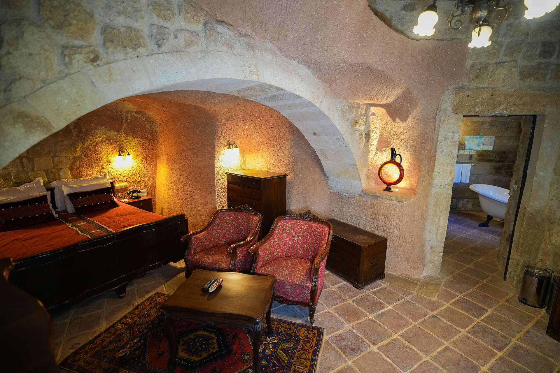 Kalitenin temel ilke olarak benimsendiği ve estetiğin ön planda olduğu, standartların üstünde hizmet veren otelimizin, orijinal görünümlerine sadık kalarak, Nevşehir'e özel kepez taşı ve tarihi işçilik tarzı ile restore edilen kayadan odalarında, misafirlerimize tarihi bir ortamda modern olanaklarla konaklama imkanı sunmaktayız.